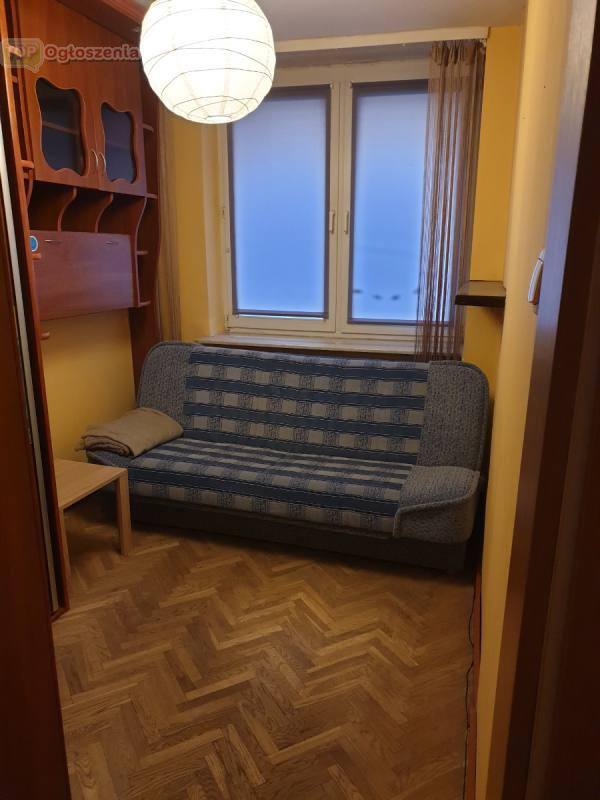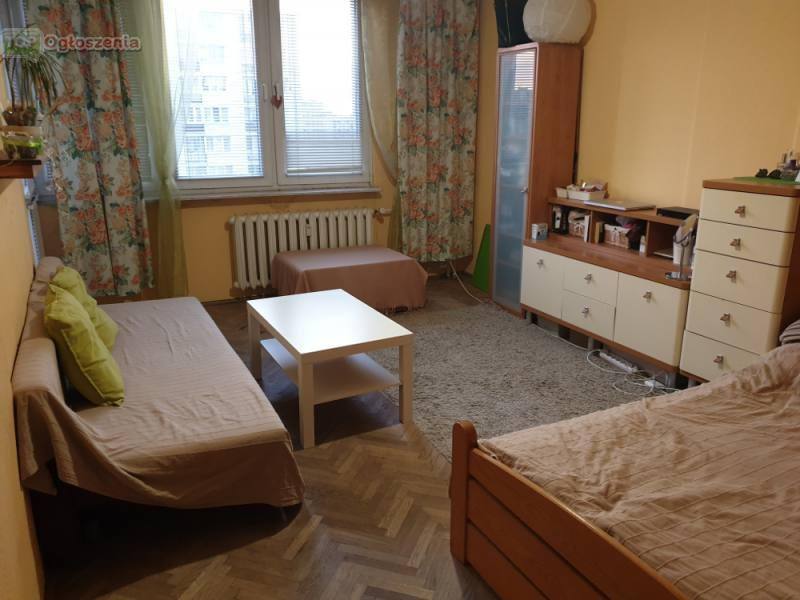 Wyjście na balkon. W mniejszym pokoju znajduje się pojemna szafa. Mieszkanie jest umeblowane i ma podstawowy sprzęt AGD (pralka, lodówka). Blok wielka płyta, Cena miesięczna najmu: 1350 zł + 620 zł czynsz (kwota zależna jest też od zużytej wody) + prąd
